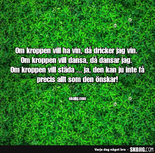 Om kroppen vill ha vin, då dricker jag vin.