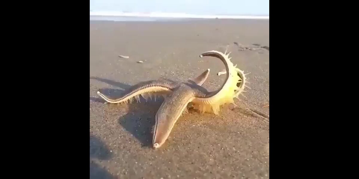 En sjöstjärna som går på stranden