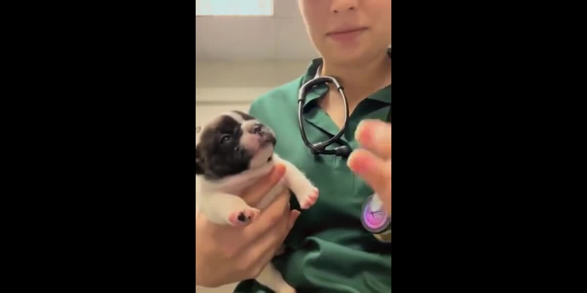 En dramatisk valp får sin medicin.