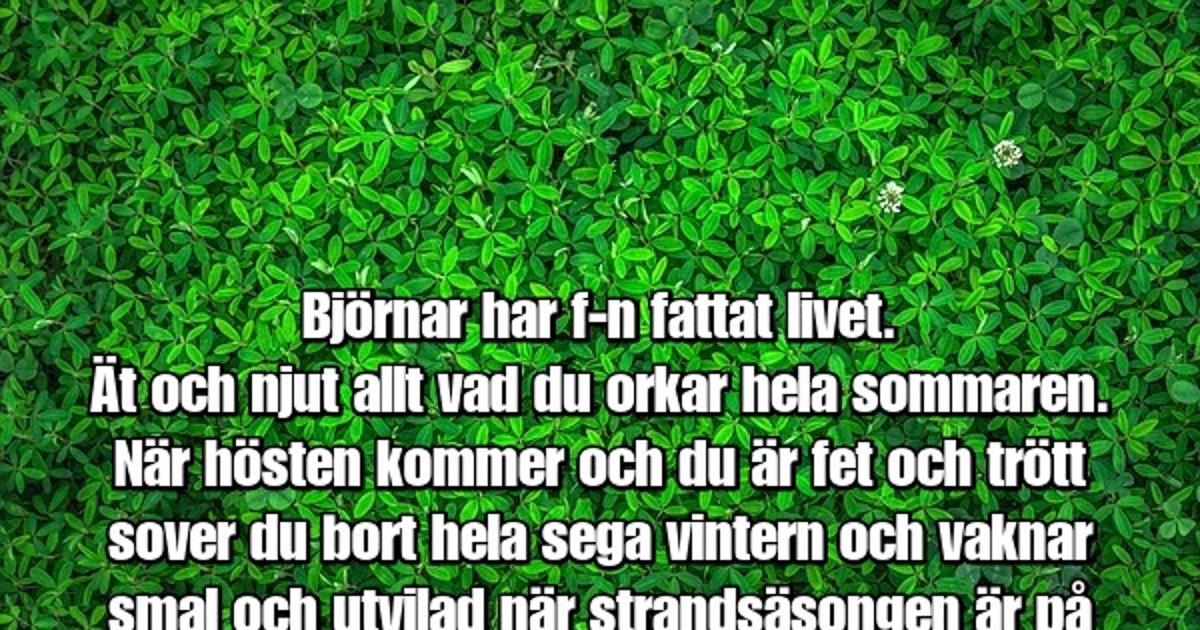 Björnar har f, n fattat livet.