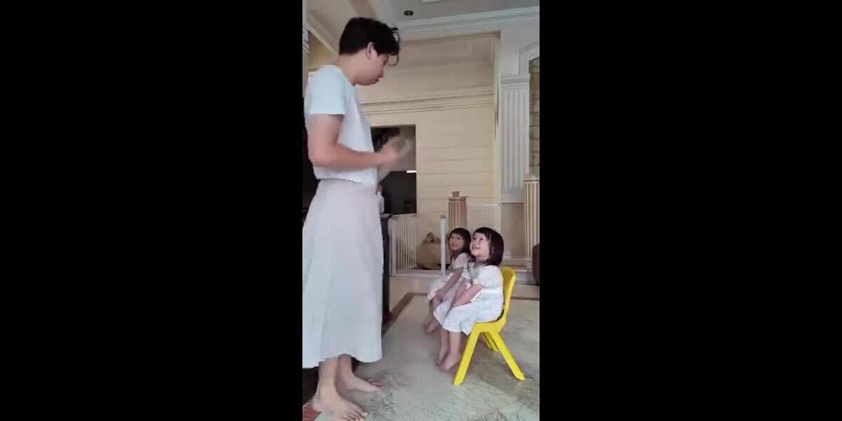 Fadern lär sina döttrar goda maner.