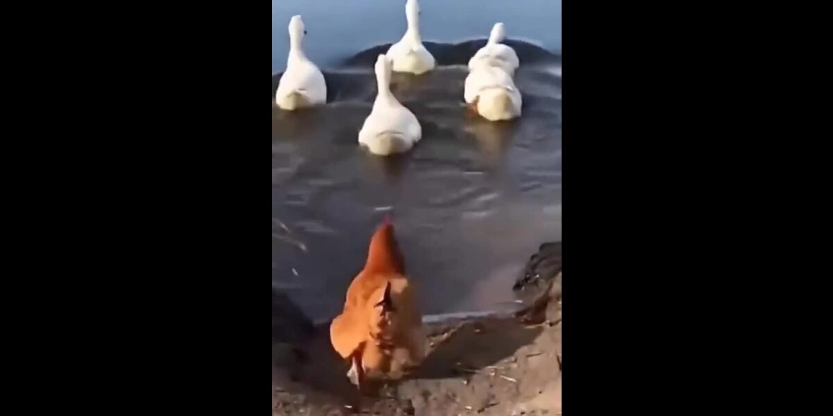 En höna som trodde att den var en anka konfronteras med verkligheten.