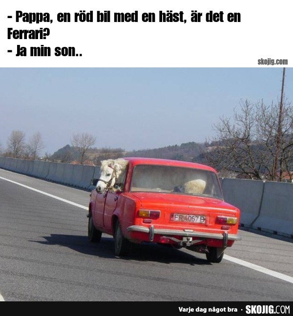 Pappa, en röd bil med ..