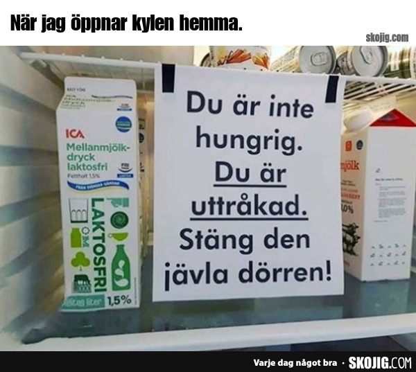 När jag öppnar kylen hemma.