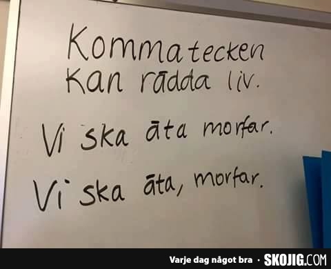 grammatik, liv, kommatecken